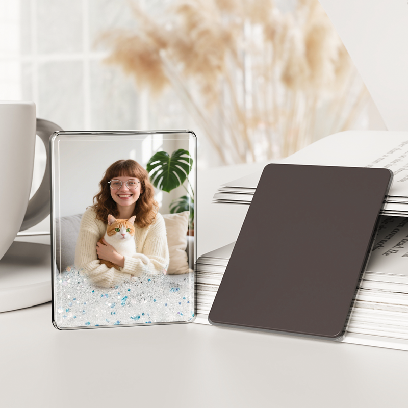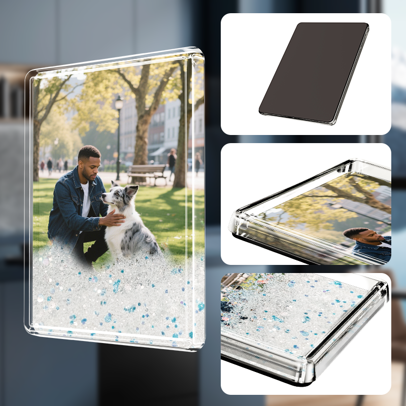 Cute Pet Photo Theme Flowing Sand Refrigerator Sticker, Customized Pet Photos and Flowing Sparkling Powder Fun Interaction, Instantly Freeze Warm Times, Filling Every Corner of the Home with Cute Memories