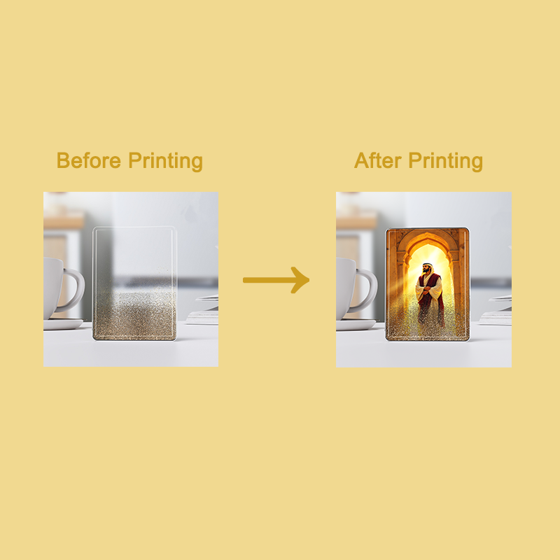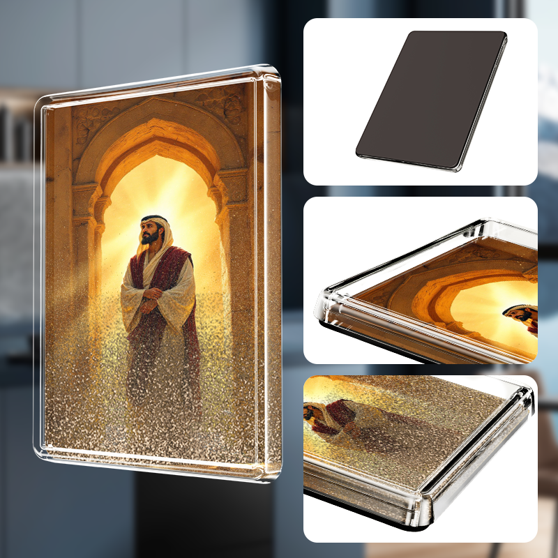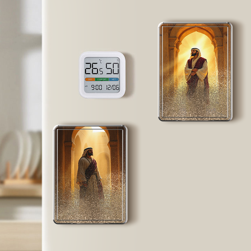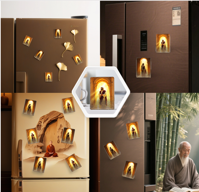 Religious themed limited edition quicksand refrigerator sticker, holy light flows quietly with the quicksand, expressing devout faith in artistic form and integrating the sacred atmosphere into daily space