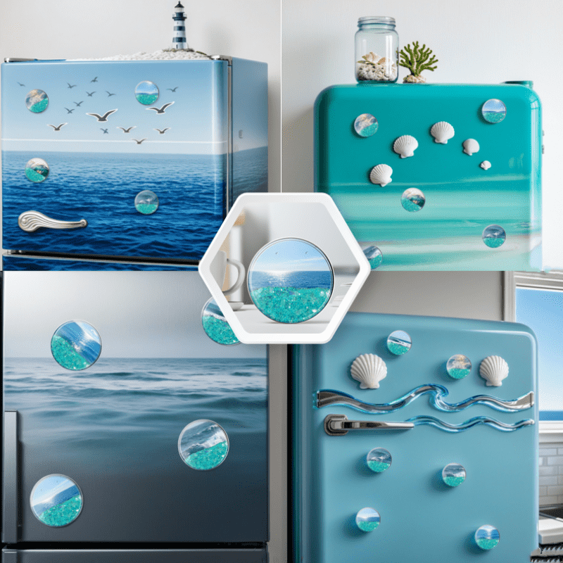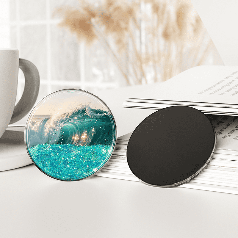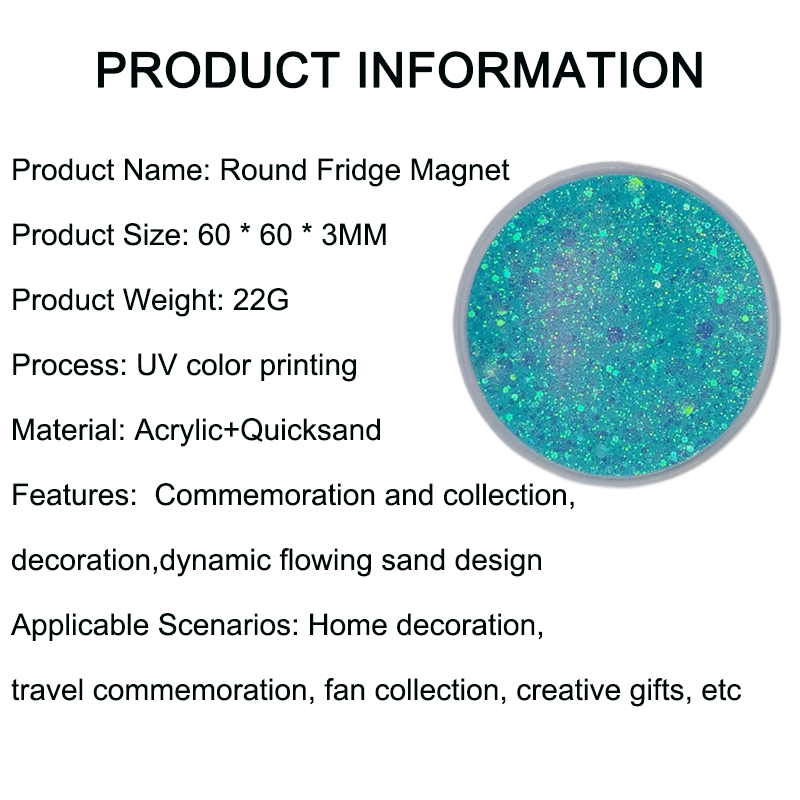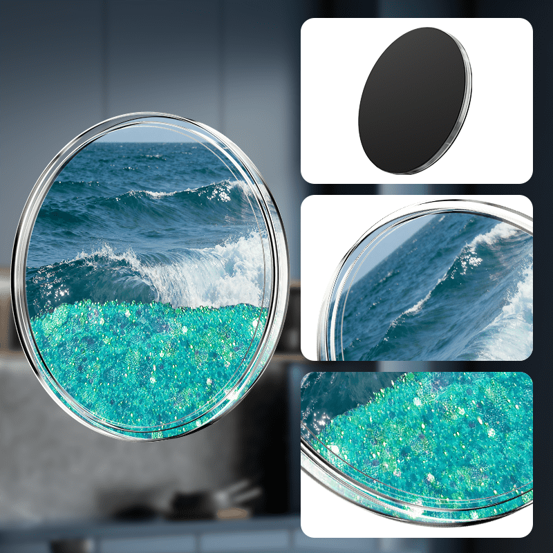 Ocean Rhythm Theme Quicksand Round Fridge Magnet: With blue ocean currents and bubbles circulating within a circle, paired with shimmering seashells to simulate deep sea light and shadow, it injects tranquil ocean energy into homes.
